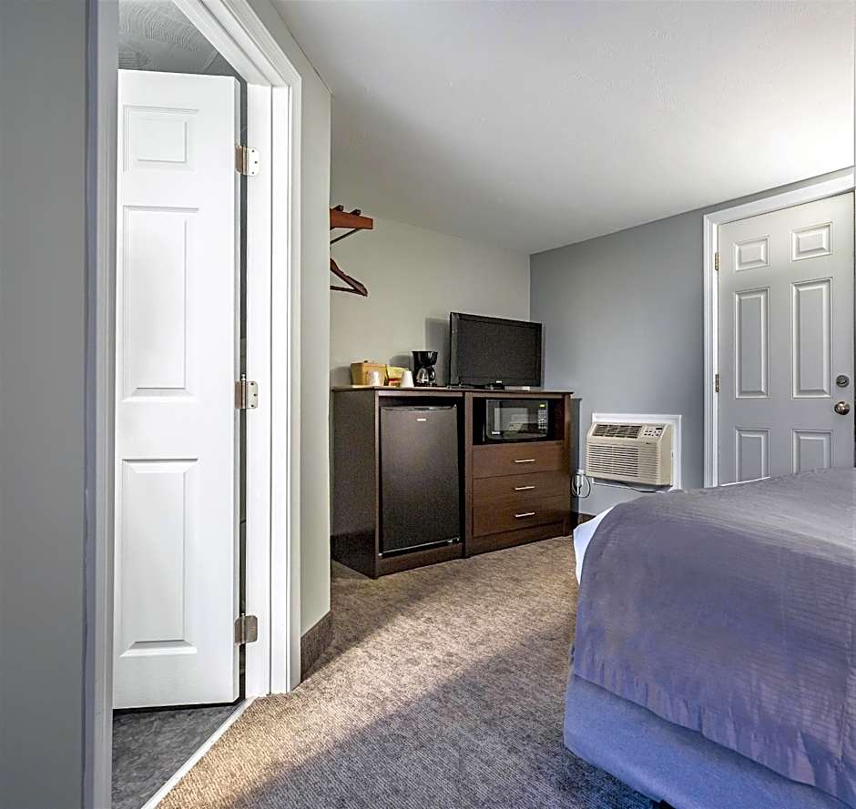 This Standard King Room features a microwave, refrigerator, and a work desk.