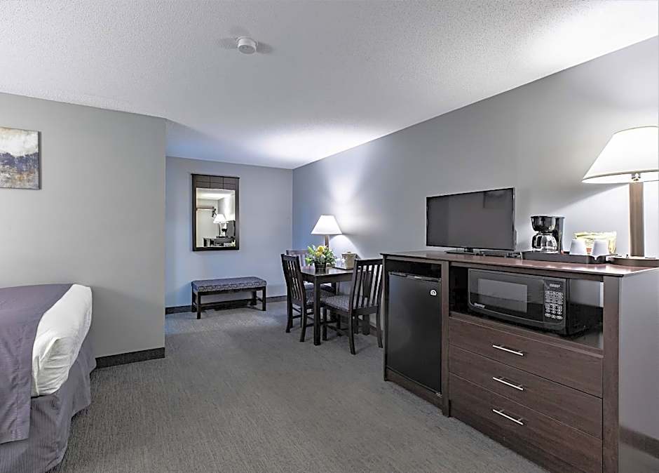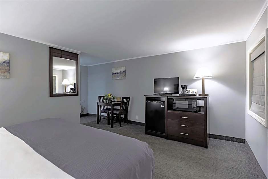 This Standard King Room features a microwave, refrigerator, and a work desk.